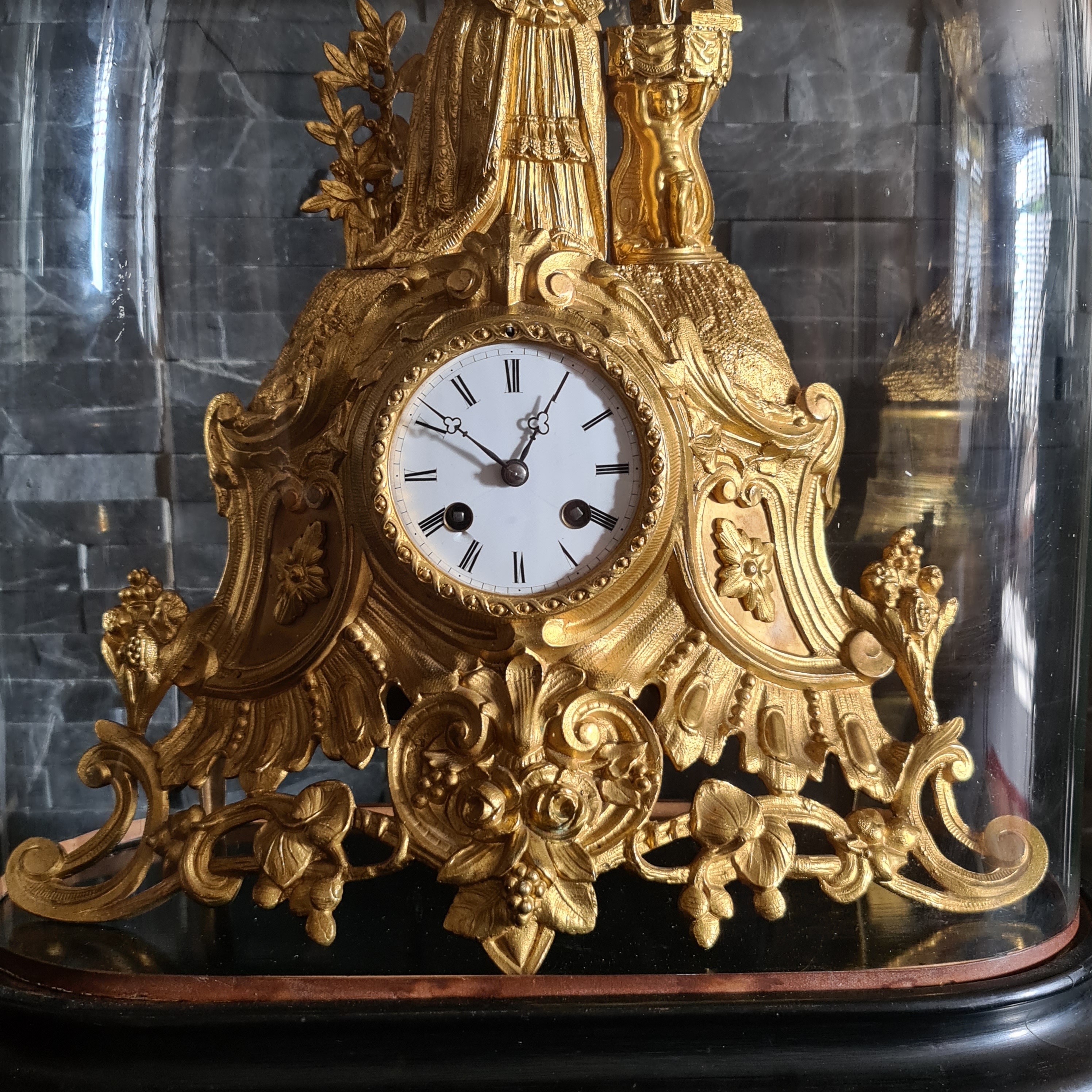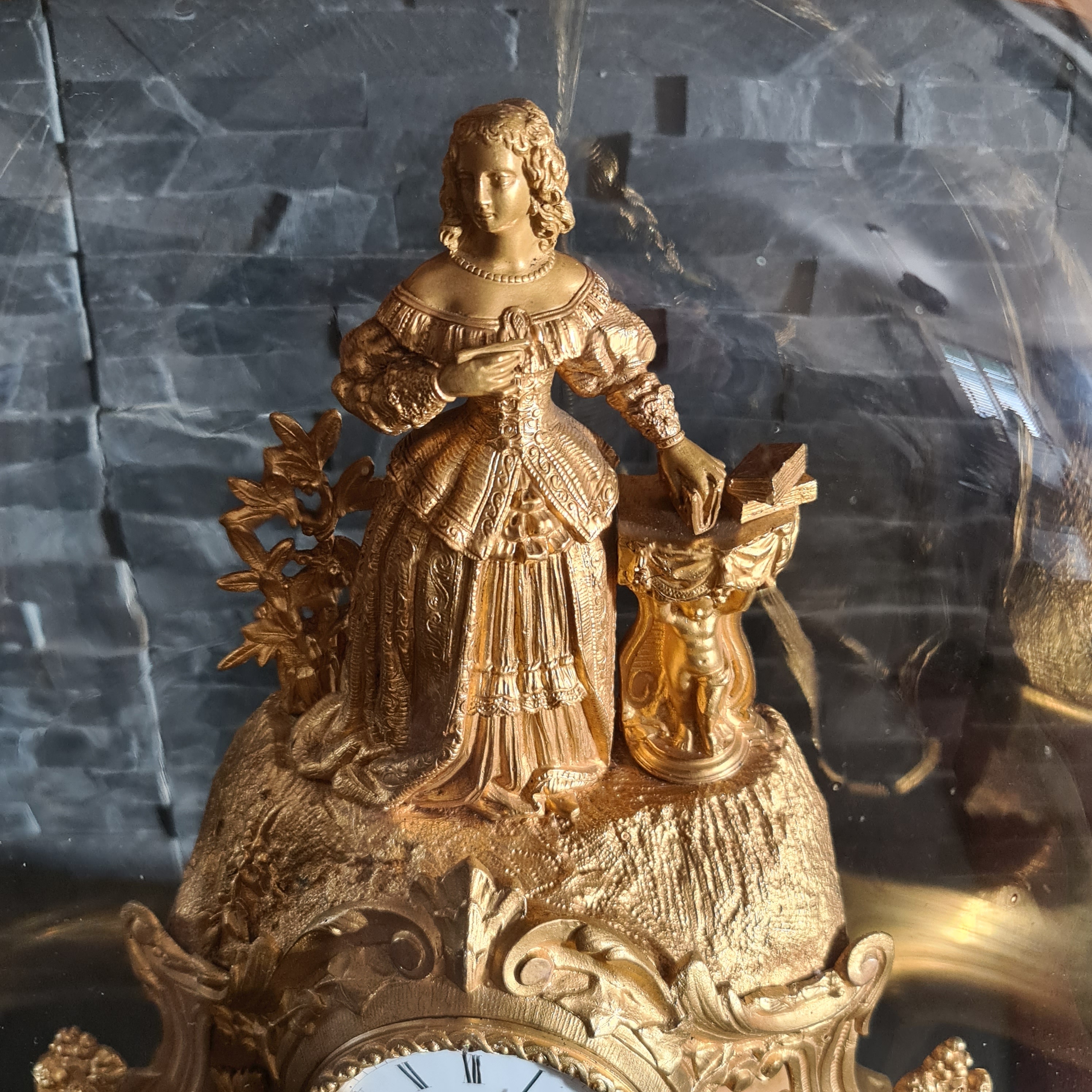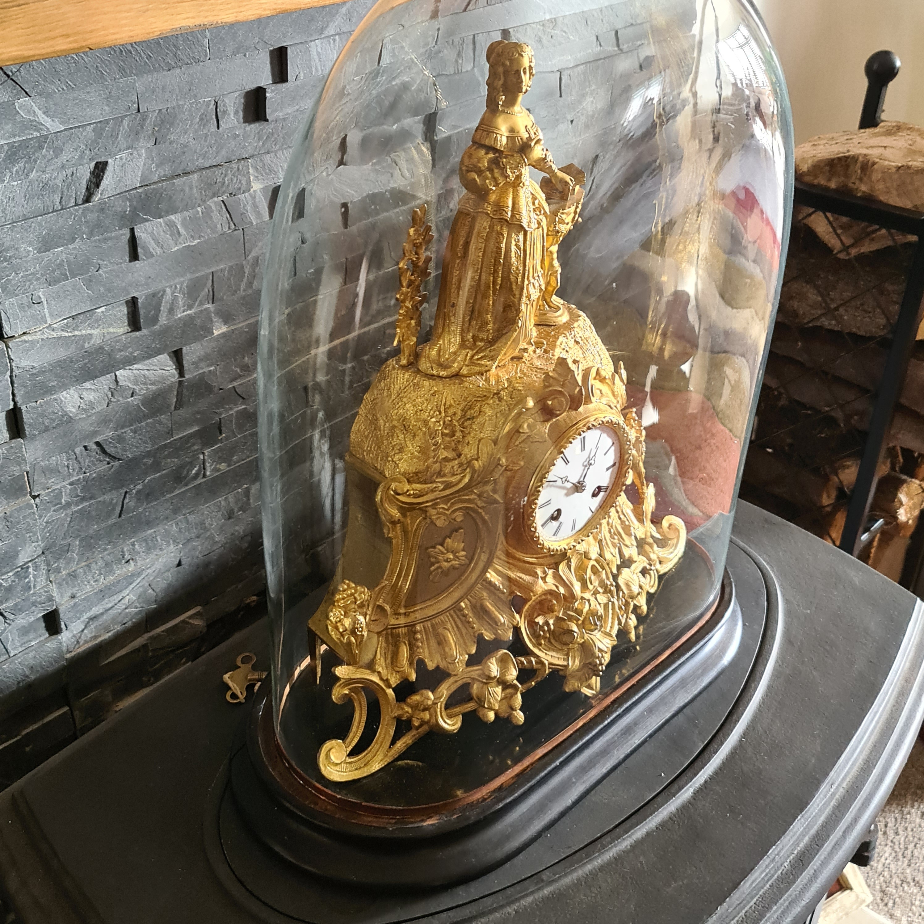 Large French Ormolu Mantle clock with original hand blown dome C1860